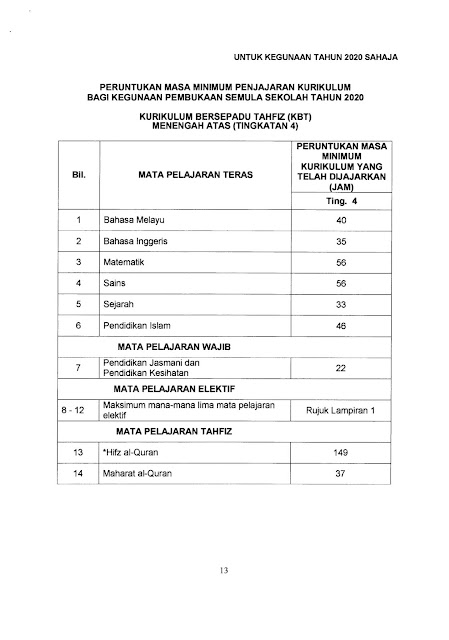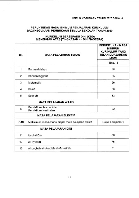 Peruntukan Masa Minimum Penjajaran Kssm 2020 Baru Pendidik2u