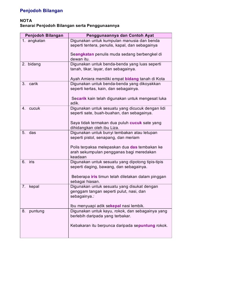 Penjodoh Bilangan 1 Doc Penjodoh Bilangan 1 Penjodoh Bilangan Ialah Kata Yang Digunakan Bersama Sama Dengan Kata Bilangan Untuk Merujuk Kepada Kata Course Hero