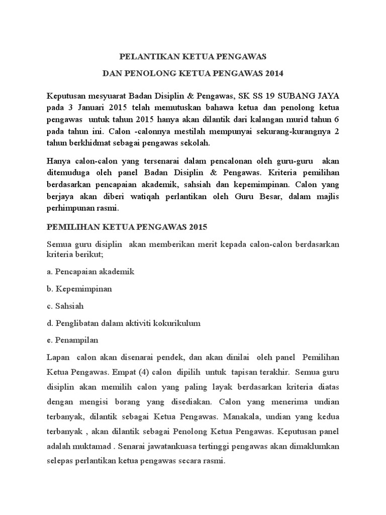 Program Sk Sungai Salleh 2015 Dokumentasi Perlantikan Pengawas Sekolah Pengawas Pss Pengawas Spbt Ketua Penolong Kelas Serta Cilik Niaga 15 Februari 201