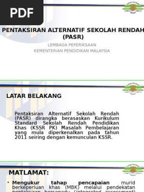 Pentaksiran Alternatif Sekolah Rendah Pasr Untuk Murid Berkeperluan Khas Mbk 2016 Cikgu Share