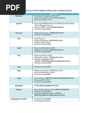 Jadual Pelaksanaan Pentaksiran Berasaskan Sekolah 2019 Docx