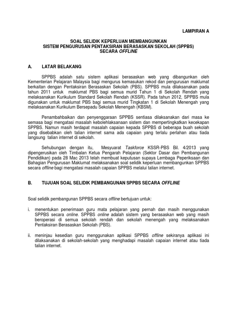 Lampiran A Soal Selidik Keperluan Membangunkan Sistem Pengurusan Pentaksiran Berasaskan Sekolah