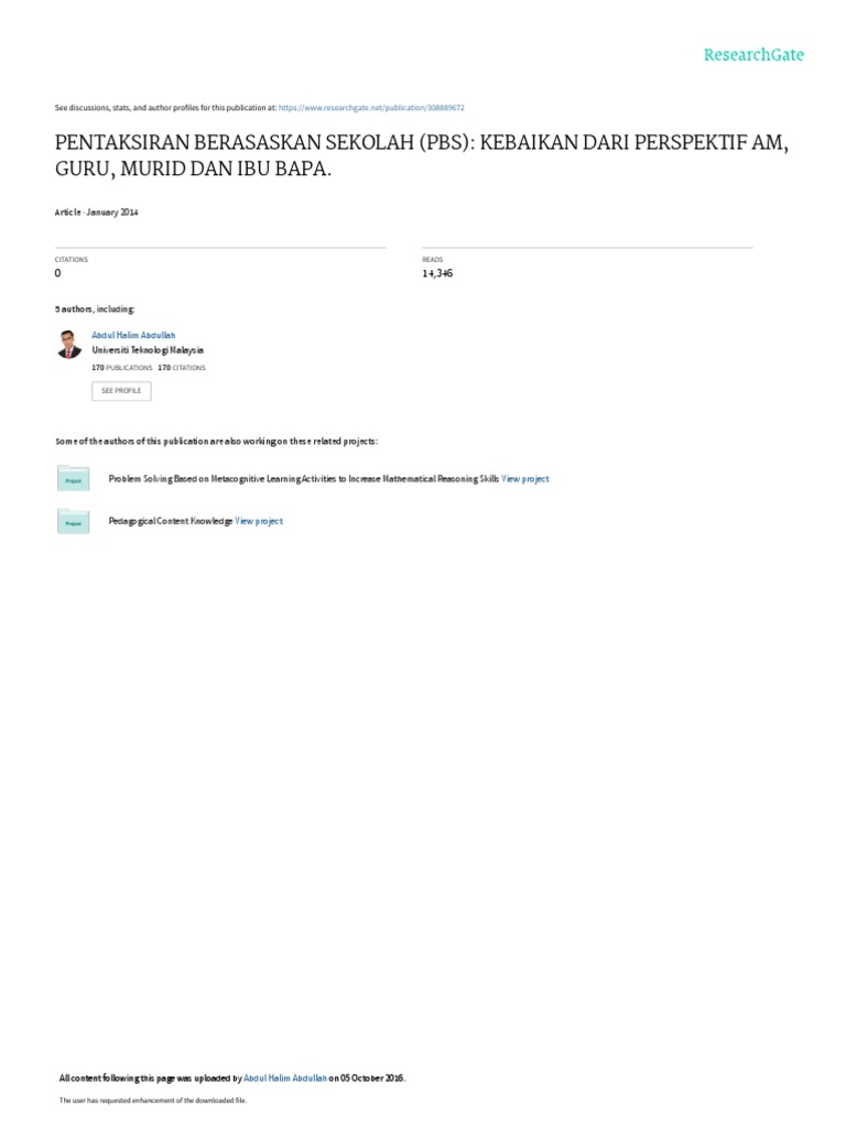 Pdf Pelaksanaan Pentaksiran Sekolah Ps Satu Inovasi Sistem Penilaian Murid Untuk Peningkatan Profesionalisme Guru Abad 21 Dr Ramlah Ab Khalid Academia Edu