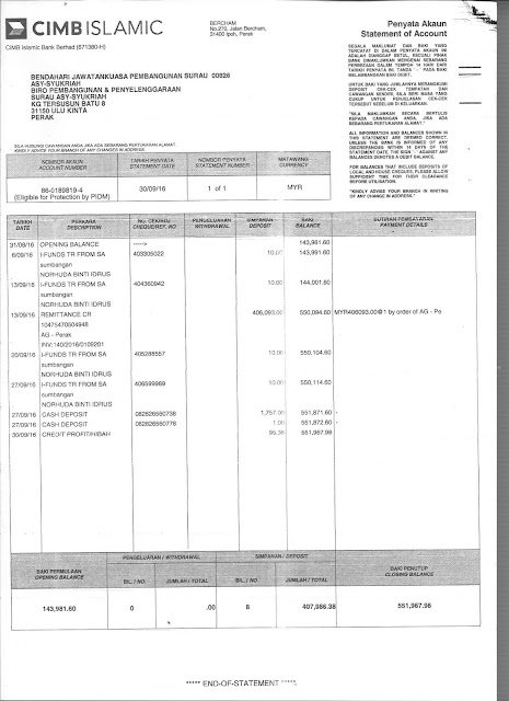 Biro Pembangunan Penyelenggaraan Surau Asy Syukriah Penyata Kewangan Bulanan Cimb