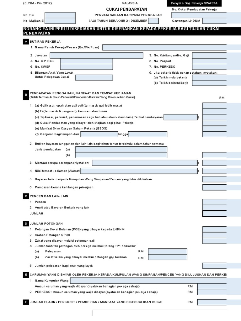 Borang Ea Borang Penyata Gaji Setahun Pekerja Swasta