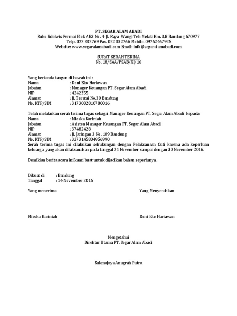 Contoh Surat Serah Terima Tugas Dan Tanggung Jawab Backup Gambar