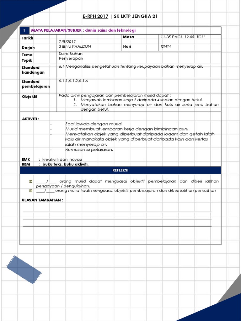 Rph Dst Tahun 3 Sumber Pendidikan Unit 6 Penyerapan
