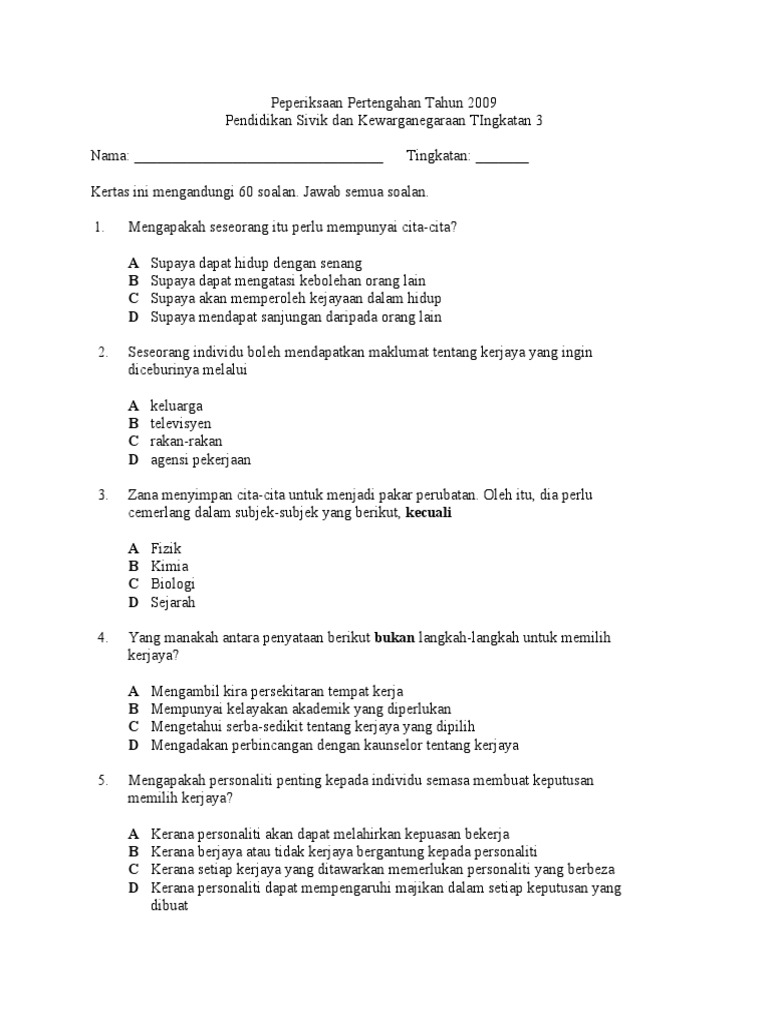 Bank Soalan Peperiksaan Pertengahan Tahun 2018 Kbsm Tingkatan 4