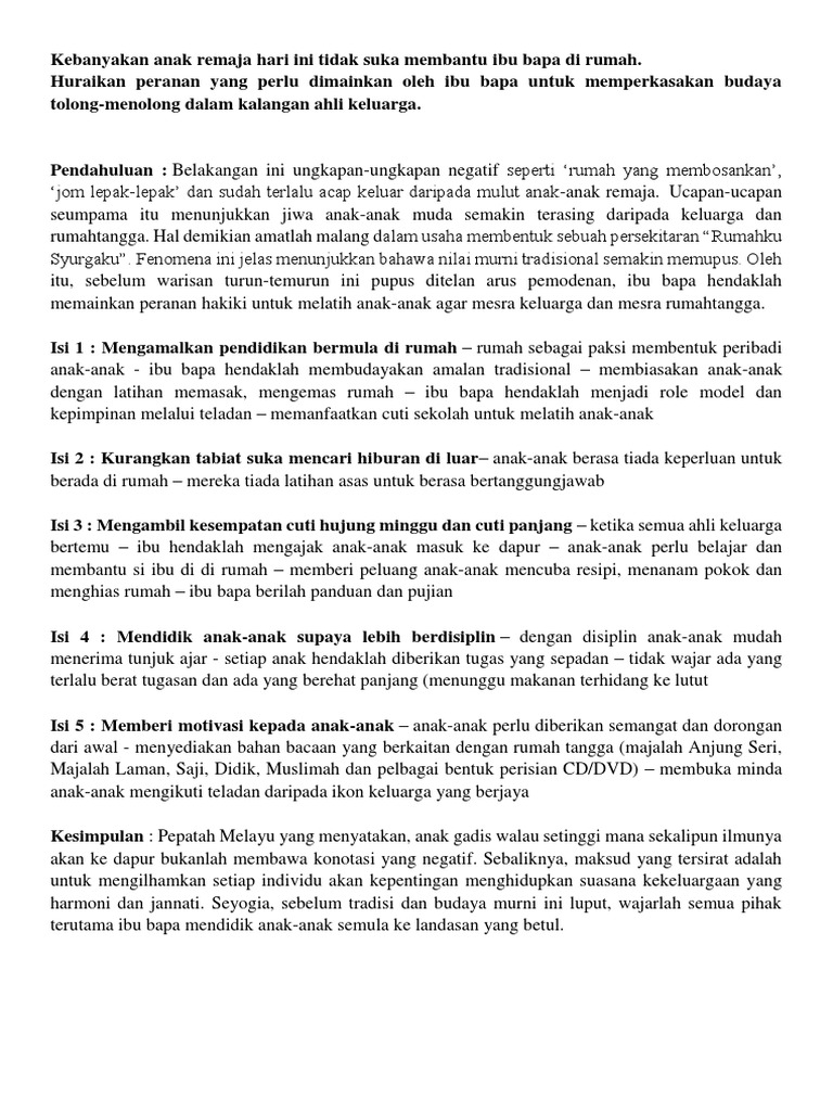 Peranan Yang Perlu Dimainkan Oleh Ibu Bapa Untuk Memperkasakan Budaya Tolong Menolong Dalam Kalangan Ahli Keluarga