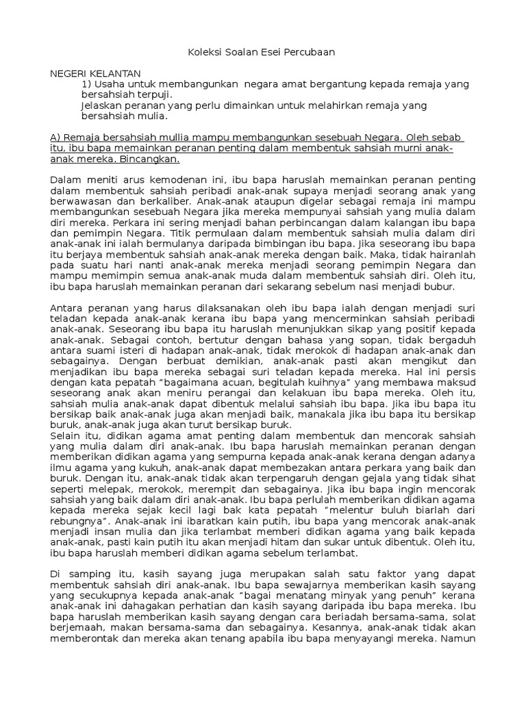 Soalan Karangan Spm Percubaan