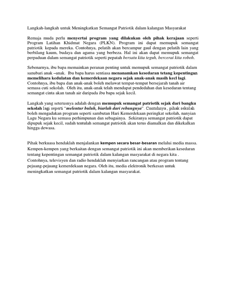 Doc Usaha Usaha Untuk Meningkatkan Semangat Patriotik Dalam Kalangan Masyarakat Di Negara Kita Ken Ge Academia Edu