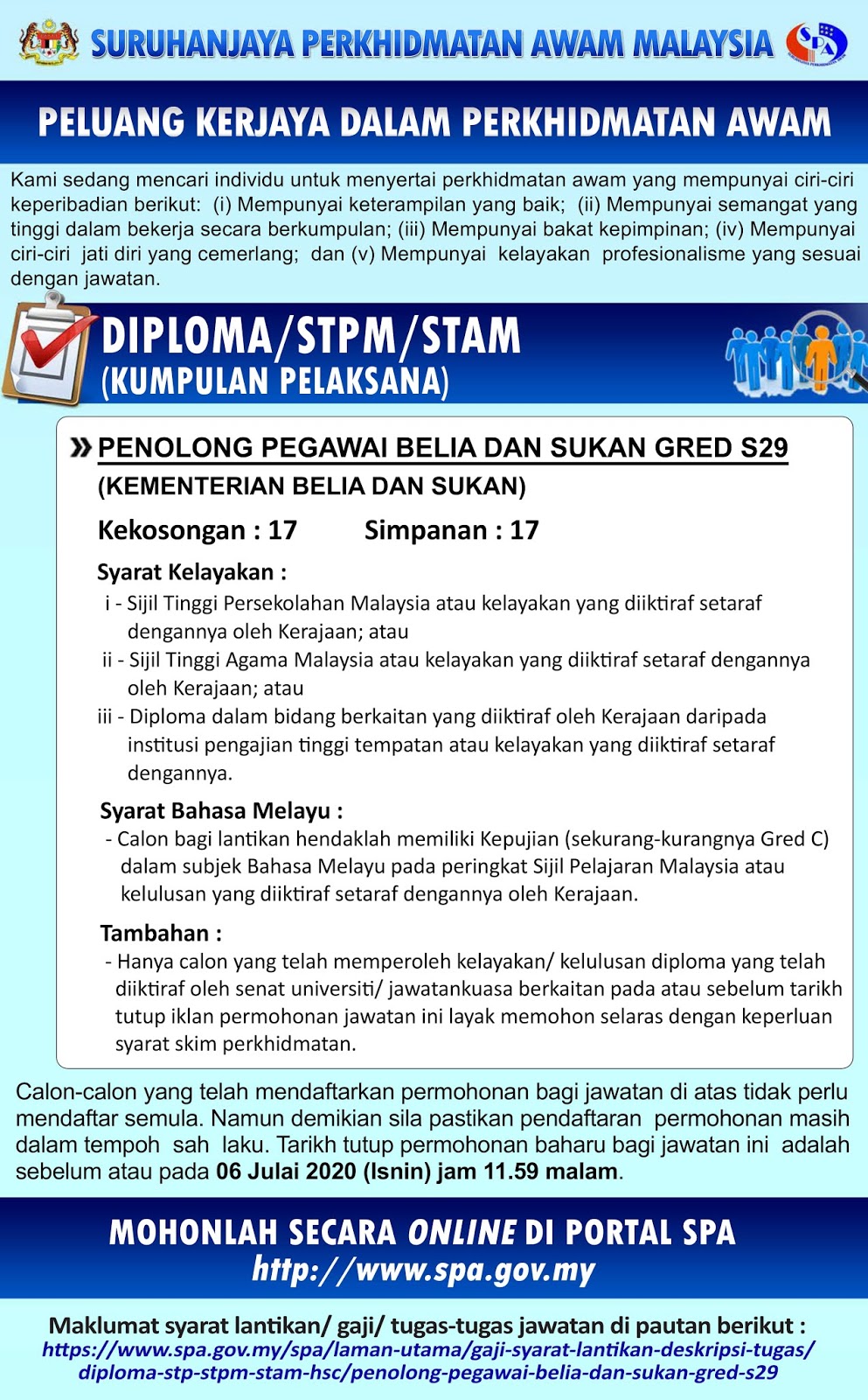 Jawatan Kosong Terkini Kementerian Belia Dan Sukan Kbs 34 Kekosongan Jawatan Penolong Pegawai Belia Sukan Kerja Kosong Kerajaan Swasta