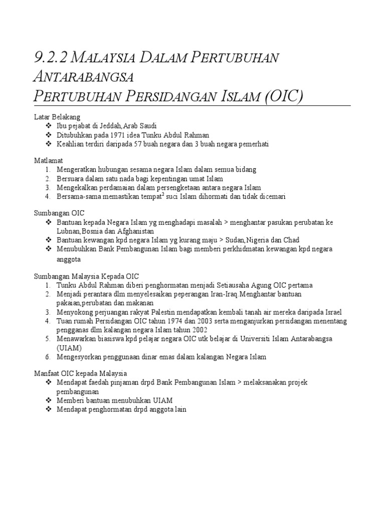 Malaysia Dan Pertubuhan Persidangan Islam Oic By Zaza Zyta