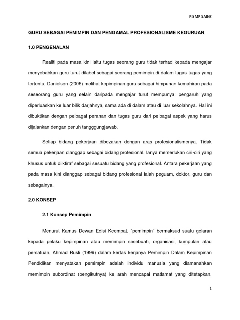 Guru Sebagai Pemimpin Dan Pengamal Profesionalisme Keguruan