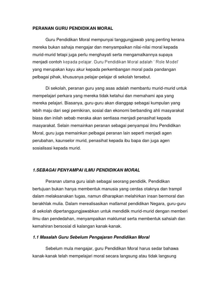 Guru Sebagai Agen Pembentukan Akhlak Dan Moral Pelajar Pdf Document