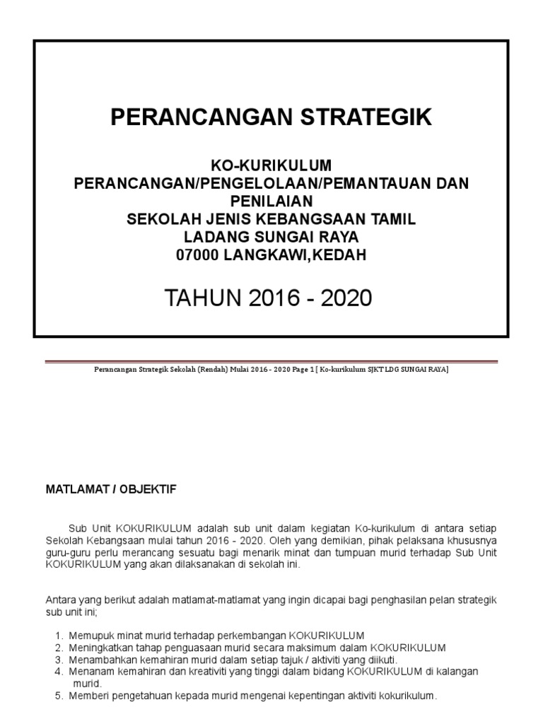 Conth Pelan Strategik Kokurikulum Sk Jerong