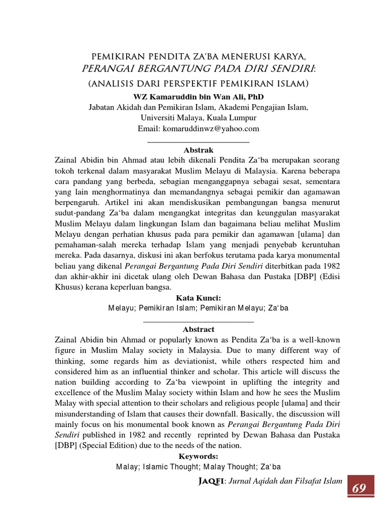 Pdf Dilema Za Ba Perangai Orang Melayu Bergantung Kepada Diri Sendiri Dilemma Of Za Ba Attitude Of Malays Depends On Themselves Aenn Ramli Academia Edu