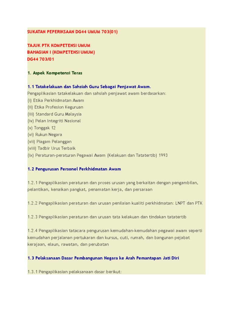 Sukatan Peperiksaan Dg44 Umum 703 01 Tajuk Ptk Kompetensi Umum Bahagian I Kompetensi Umum Dg44 703 01