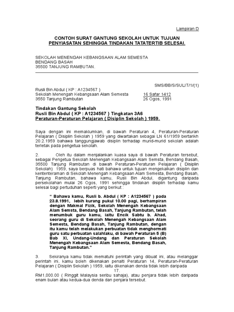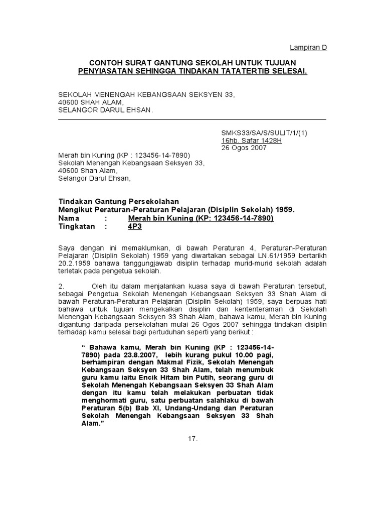 6 Contoh Surat Gantung Sekolah Tujuan Penyiasatan Lampir