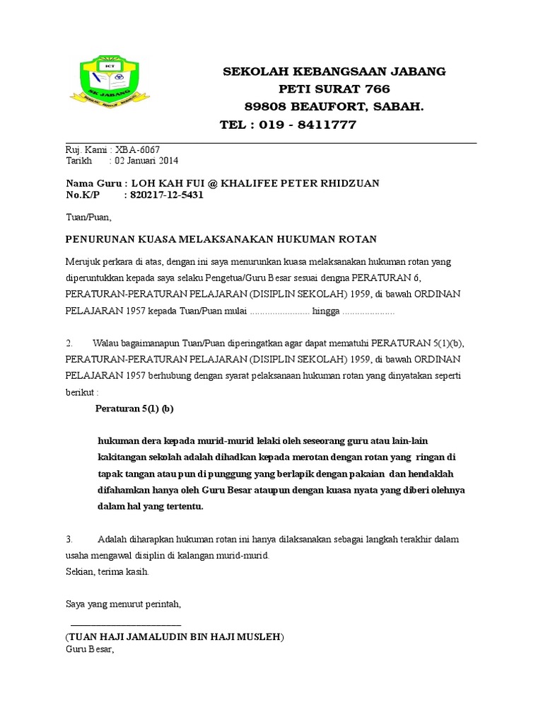 02 00 02 02 Surat Turun Kuasa Merotan Pdf Document