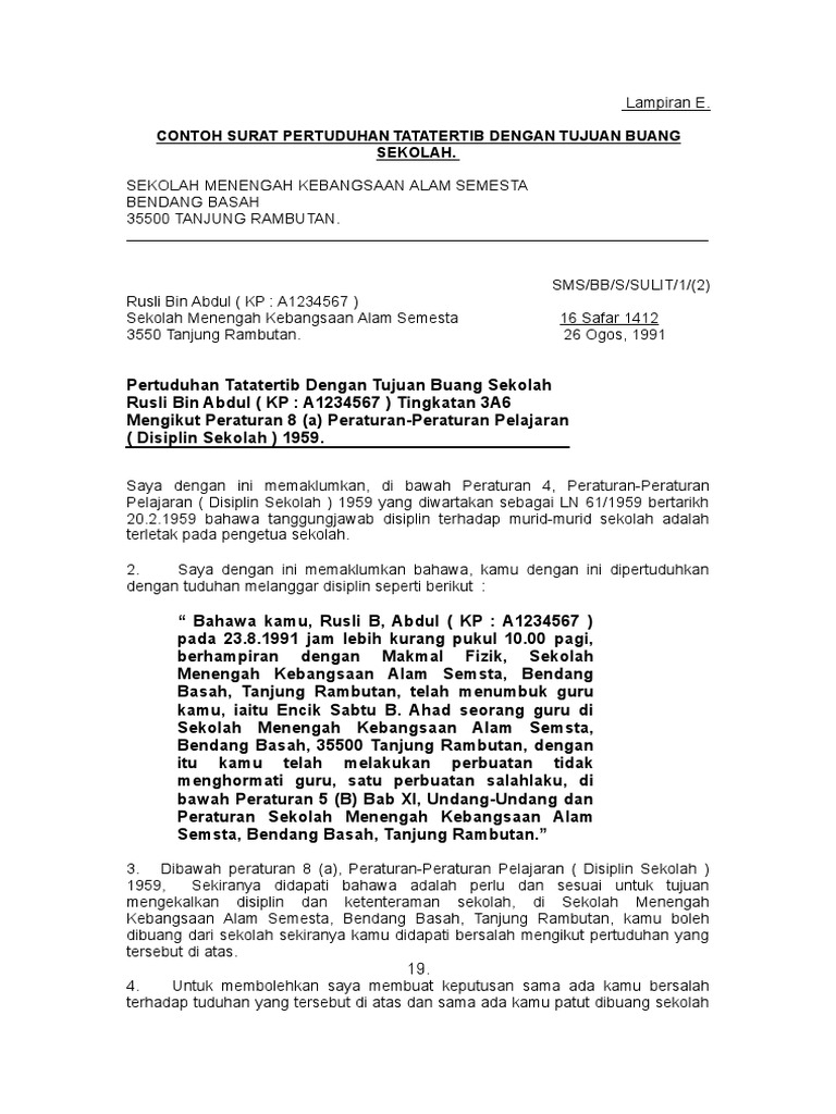 Contoh Surat Keputusan Buang Sekolah