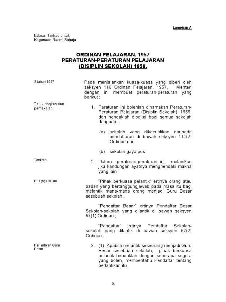 Tatacara Disiplin Murid Peraturan Peraturan Pelajaran Disiplin Sekolah 1959 Myhem Sutera Pdf Document