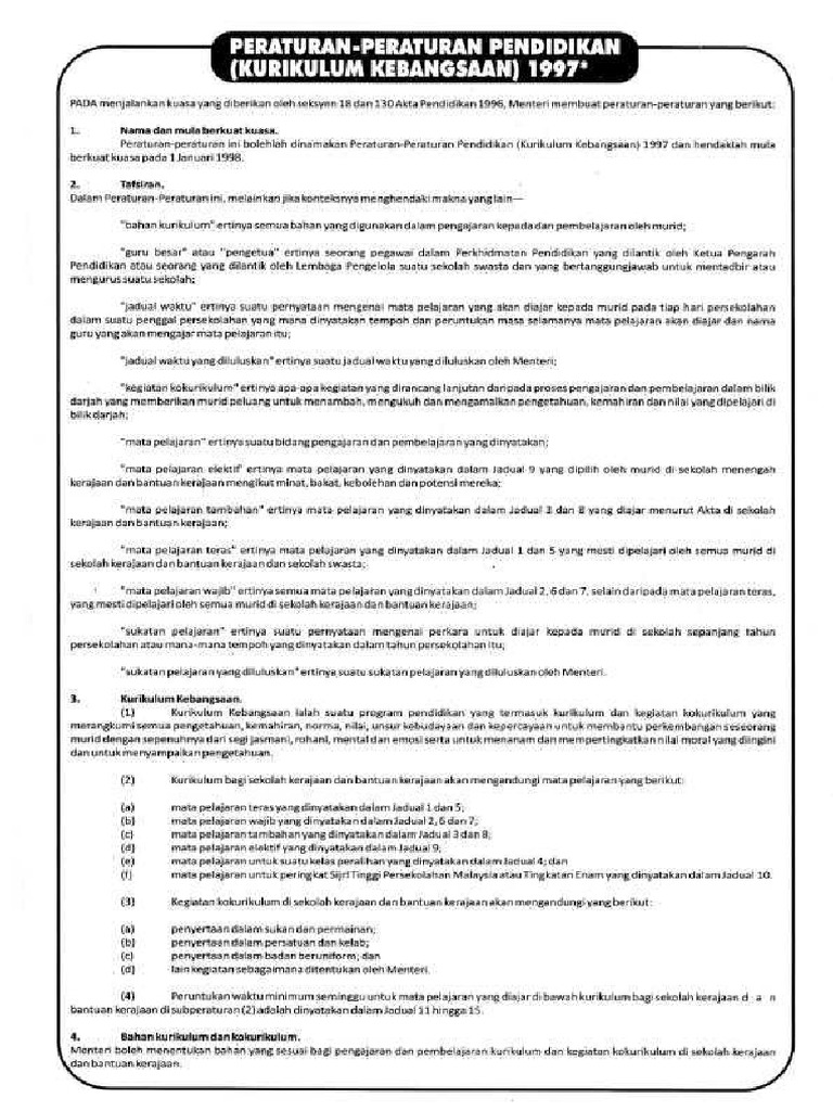 Peraturan Peraturan Pendidikan Kurikulum Kebangsaan 1997