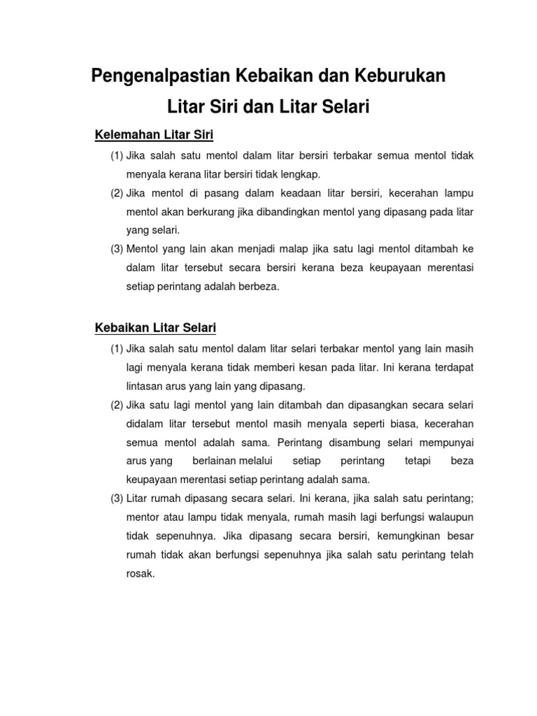 Praktikal 5 Kebaikkan Dan Keburukkan Litar Selari Dan Litar Bersiri Docx Document