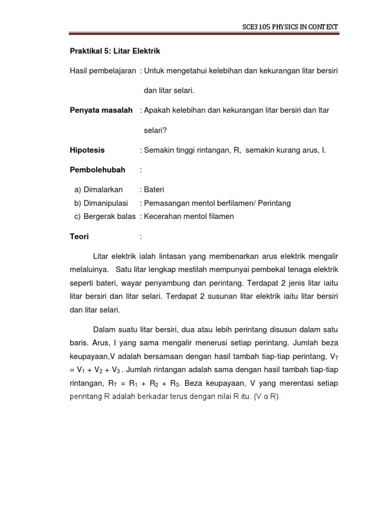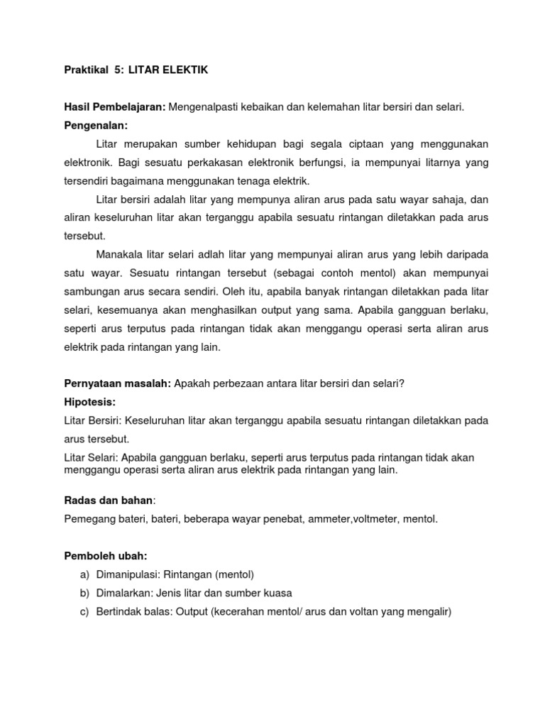 9 Litar Bersiri Dan Selari Pps Litar Bersiri Dan Selari Litar Bersiri Susunan Perintang Secara Bersiri Litar Selari Susunan Perintang Secara Selari Course Hero