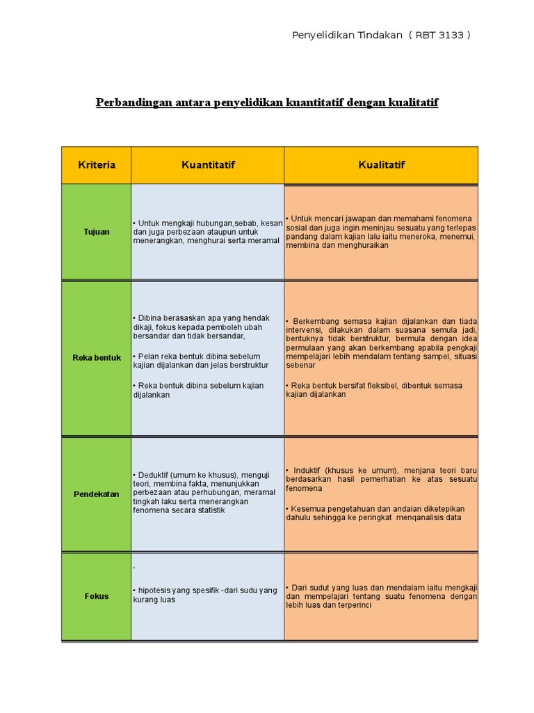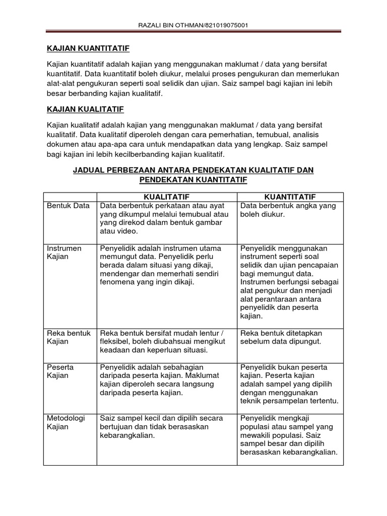 Doc Perbezaan Di Antara Kajian Kuantitatif Dan Kajian Kualitatif I Bentuk Data Tamao Serizawa Academia Edu