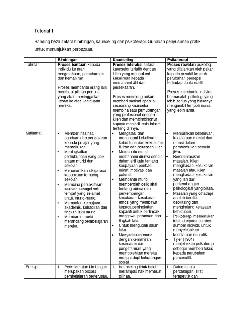 Banding Beza Antara Bimbingan Kaunseling Dan Psikoterapi Gunakan Penyusunan Grafik Untuk Menunjukkan Perbezaan