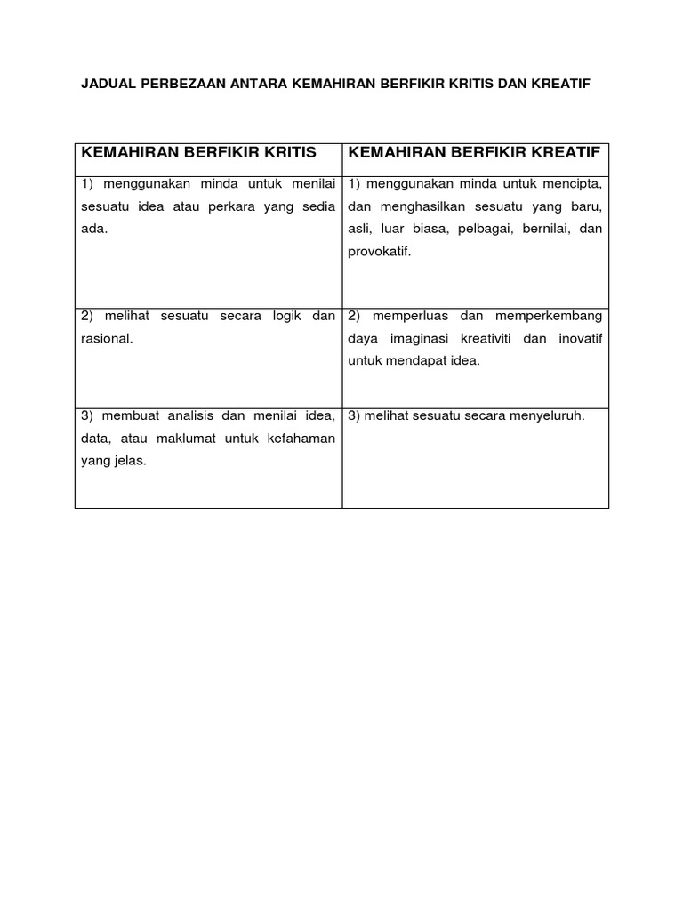Jelaskan Perbezaan Antara Pemikiran Kritikal Dan Kreatif Semak Kendiri 57 Hak Course Hero
