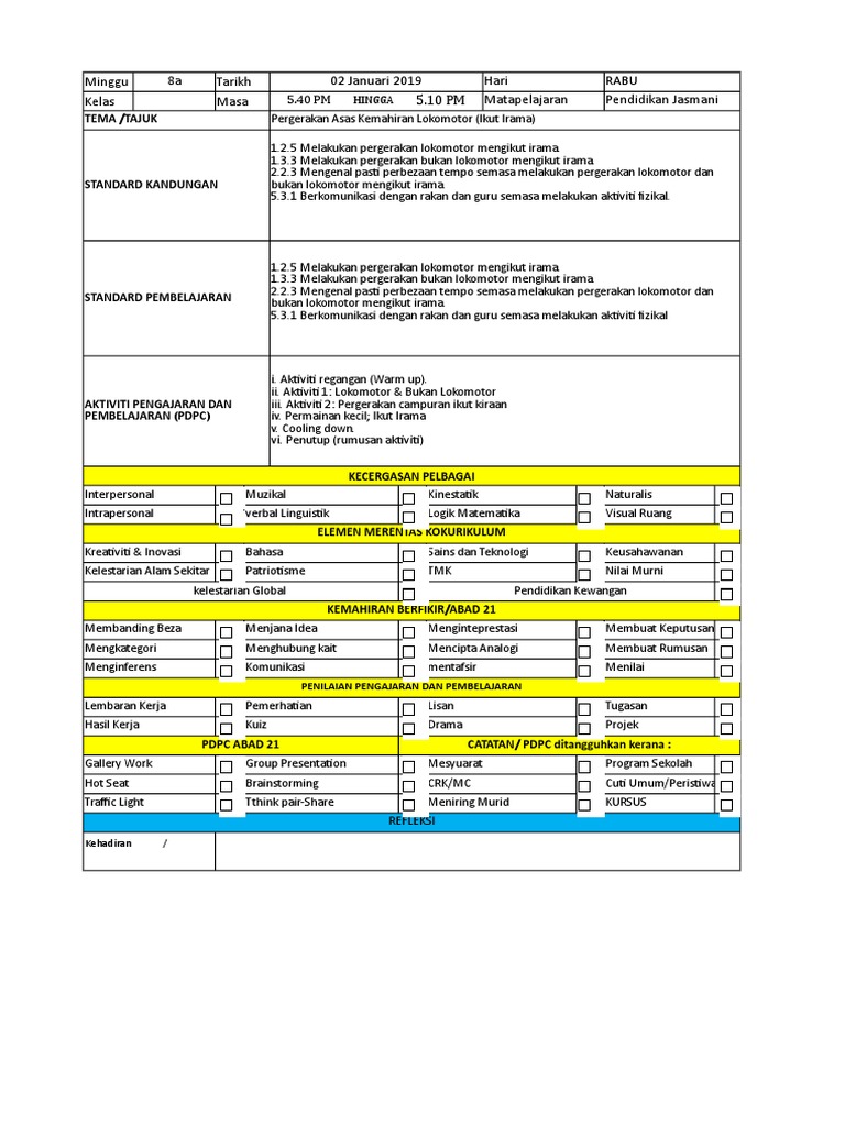 Doc Rancangan Pelajaran Harian Pjpk Komponen Pj Tahun 1 Semakan Minggu 9 Desmond Daniel Academia Edu