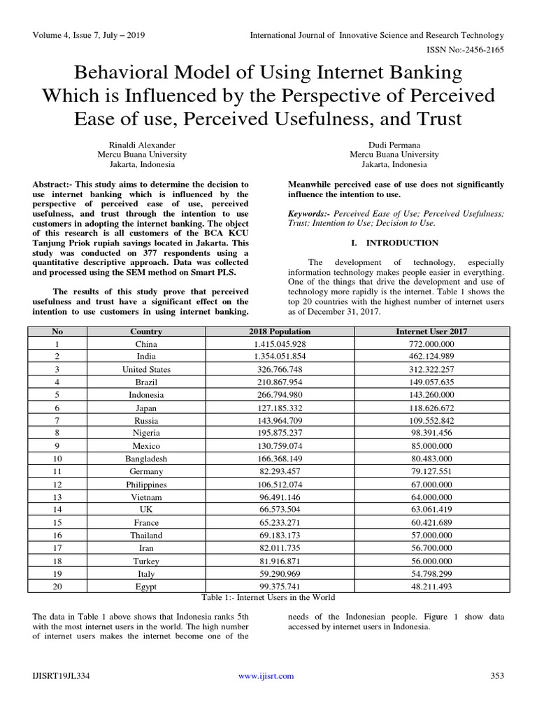 Behavioral Model Of Using Internet Banking Which Is Influenced By The Perspective Of Perceived Ease Of Use Perceived Usefulness And Trust