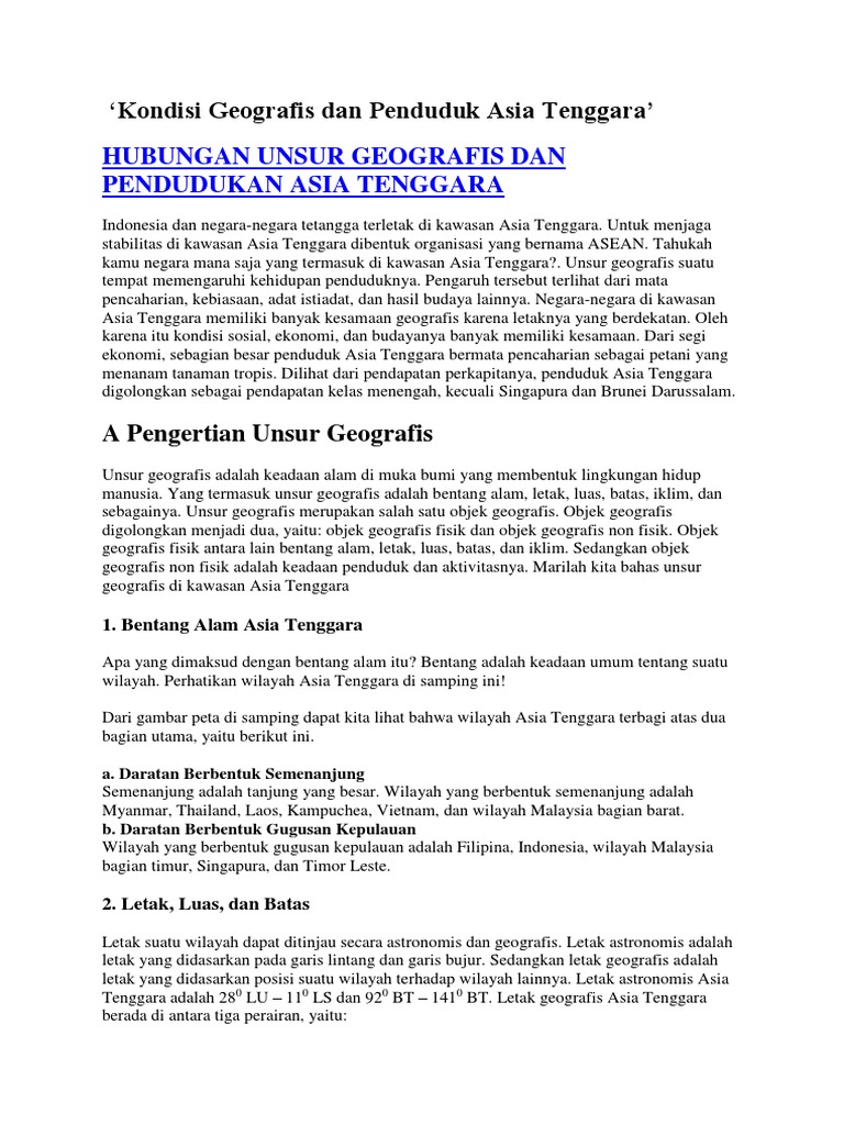 Kondisi Geografis Dan Penduduk Asia Tenggara