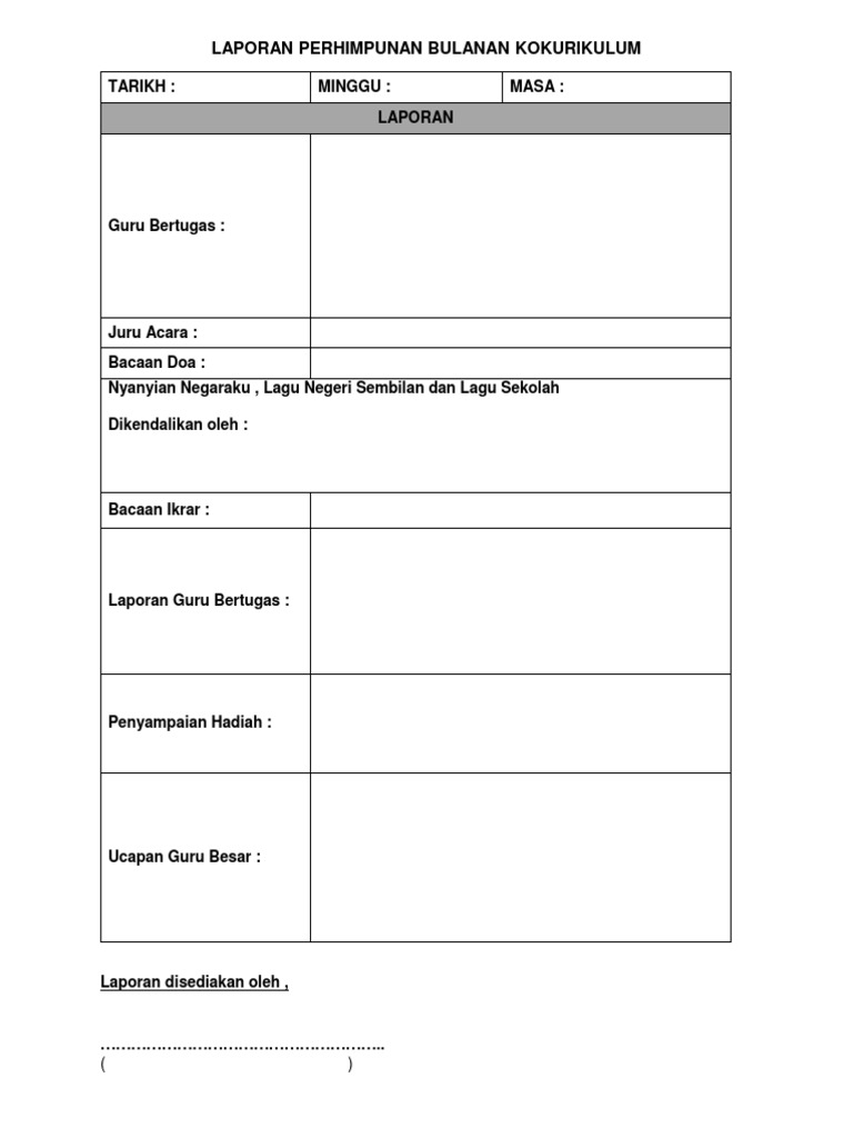Laporan Perhimpunan Bulanan Kokurikulum Tahun 2019 Docx