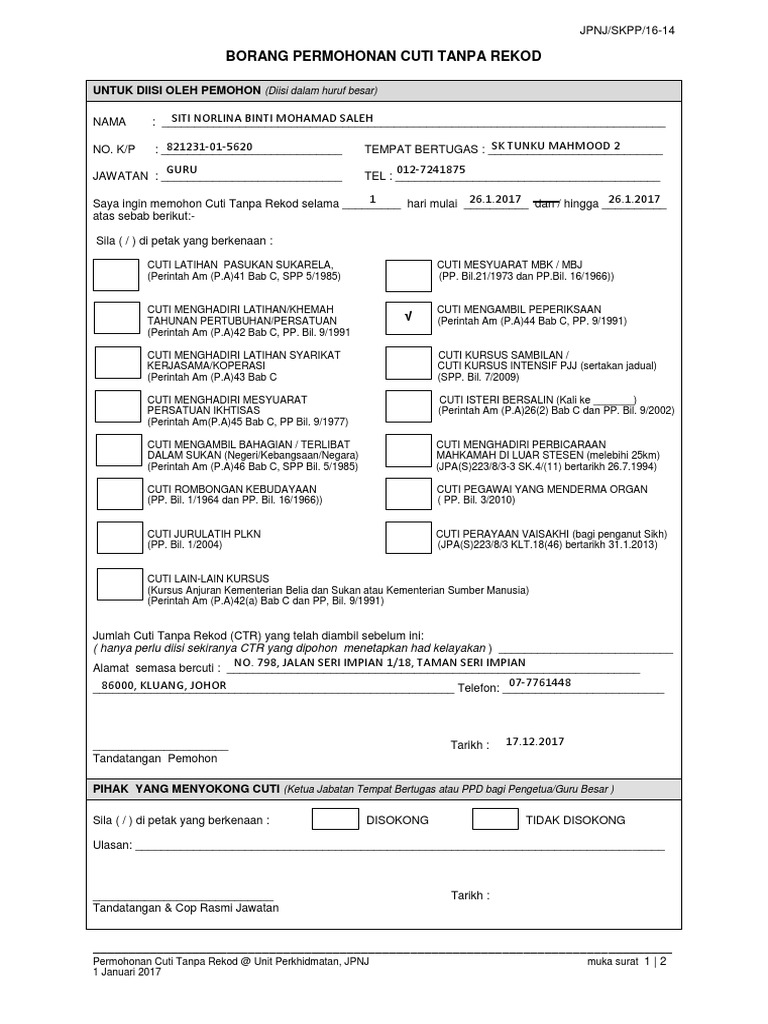 Kelayakan Cuti Tanpa Rekod Guru Sebagai Penjawat Awam Pekeliling Cikgu Share