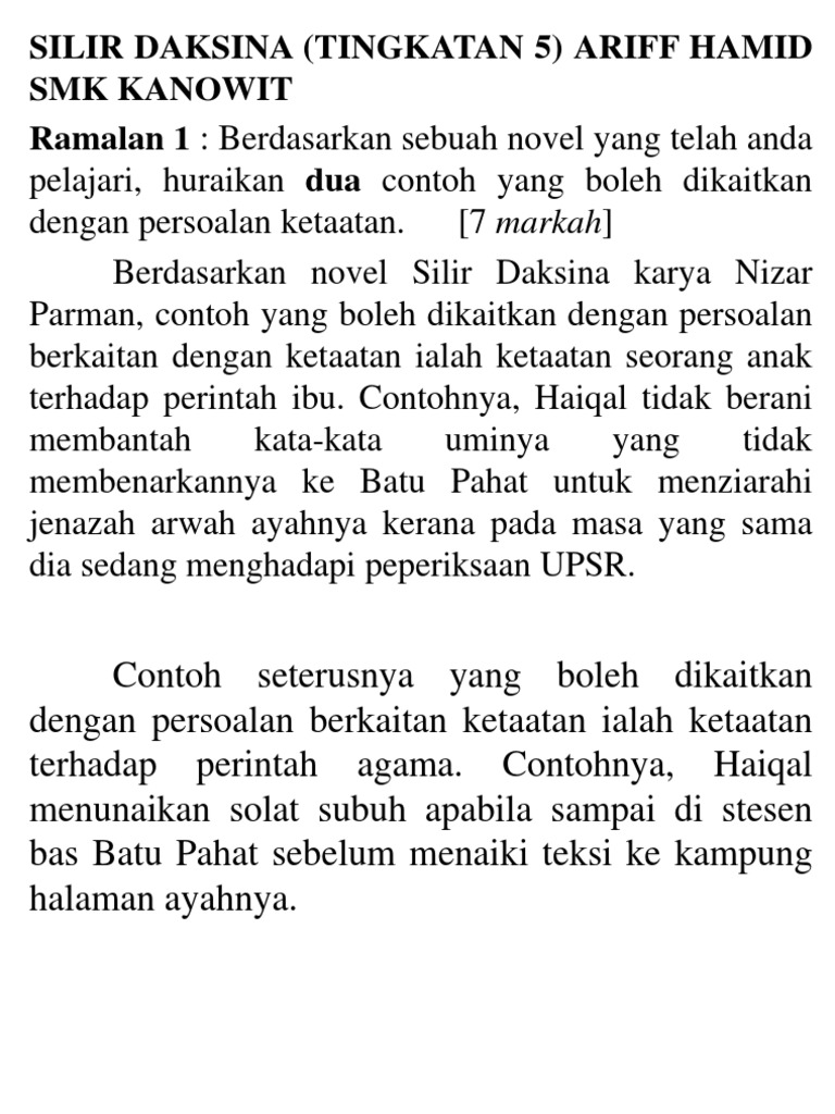 Contoh Soalan Teknik Plot Novel Silir Daksina Surat Rasmi U
