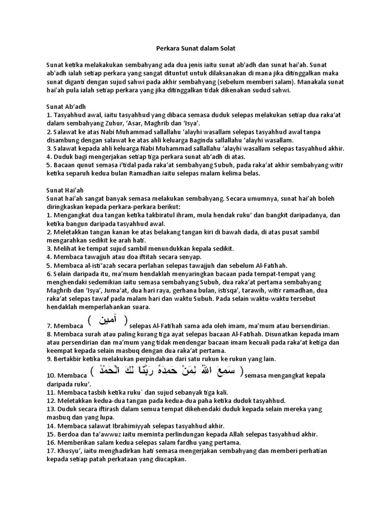 Perkara Sunat Dalam Solat Waktu Solat Dot Net