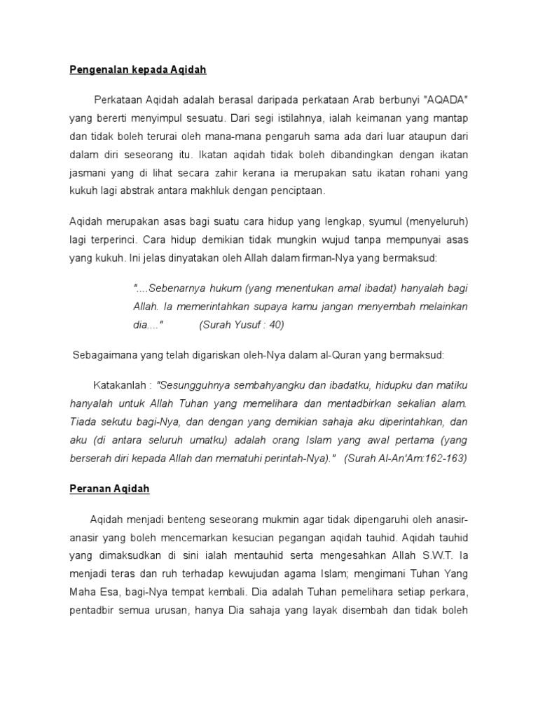 Doc Unit 2 Akidah Sinopsis Syamsul Rosli Academia Edu