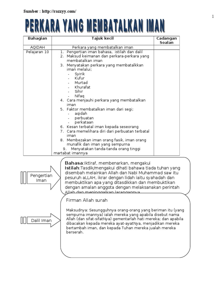Perkara Yang Membatalkan Iman Tingkatan 4 Kssm