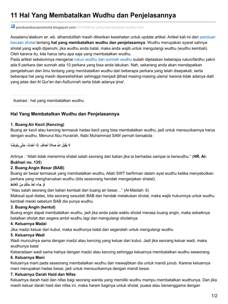 Perkara Yang Membatalkan Wuduk Wuduk Tahun 1