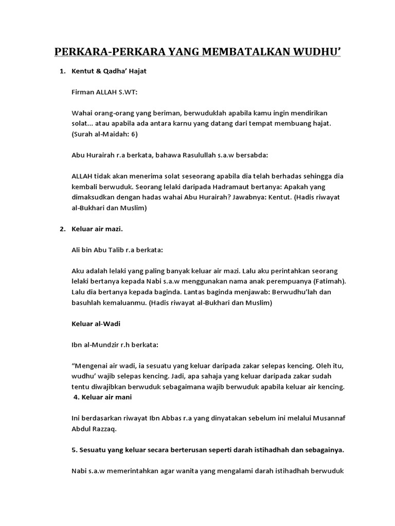 Perkara Yang Membatalkan Wuduk Berwudhuktahun 1