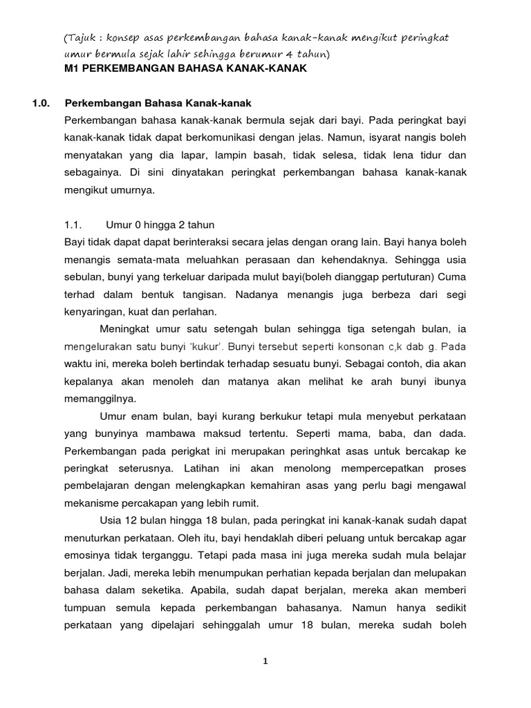 Perkembangan Bahasa Kanak Kanak Mengikut Peringkat Umur