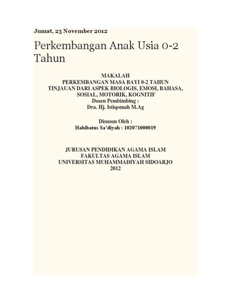 Pdf Karakteristik Tahapan Perkembangan Masa Bayi 0 2 Tahun Danny May Academia Edu