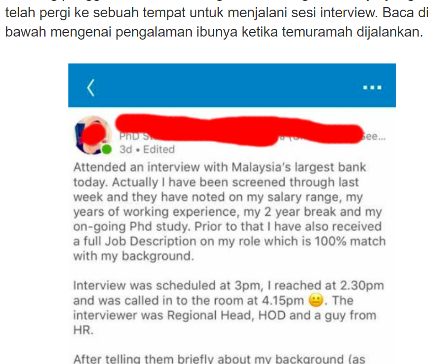 Ibu Gadis Ini Dipanggil Untuk Sesi Temuduga Kerja Tetapi Akhirnya Kecewa Kerana