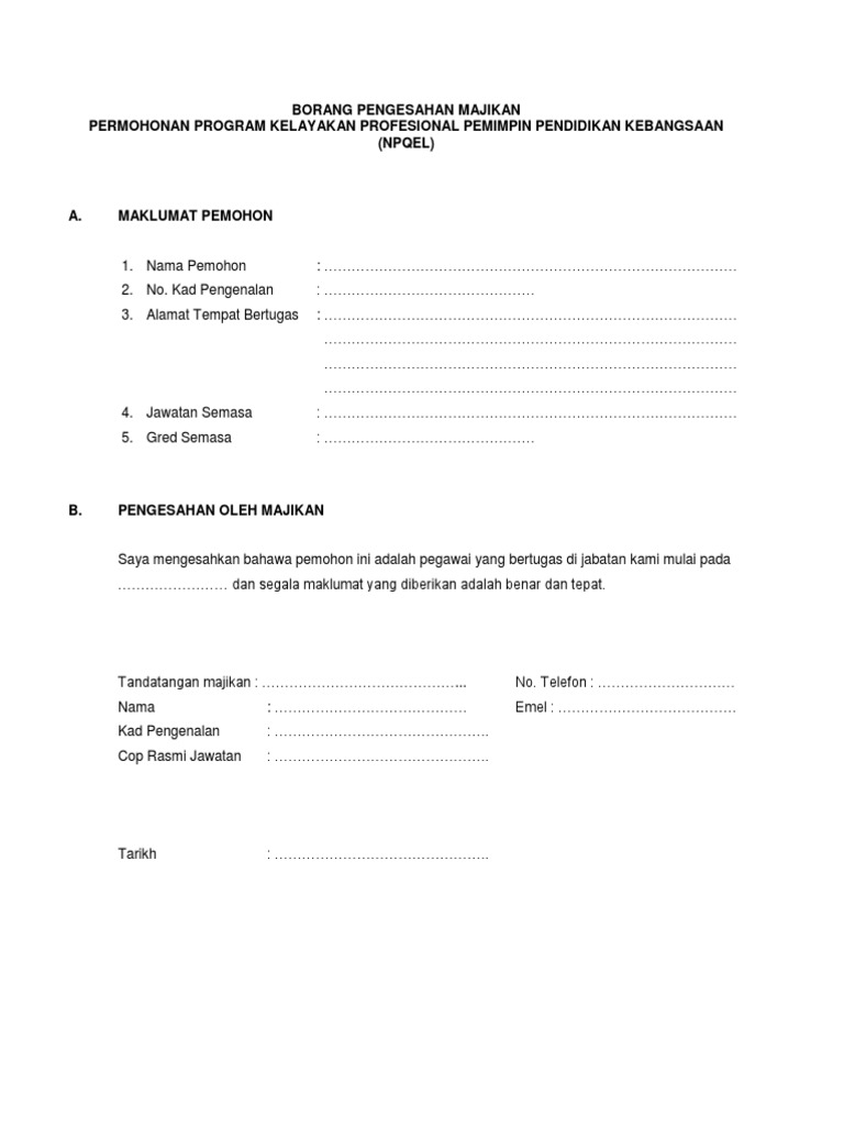 Borang Pengesahan Ketua Jabatan Npqel Pdf
