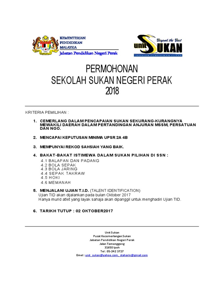 Sukan Perak On Twitter Bagi Sukan Lain Tak Silap Untuk Masuk Form 1 Sekolah Sukan Negeri Permohonan Kena Melalui Sekolah Rendah Murid Tahun 6 Bolasepak Je Beza Https T Co Lwbrowkcba
