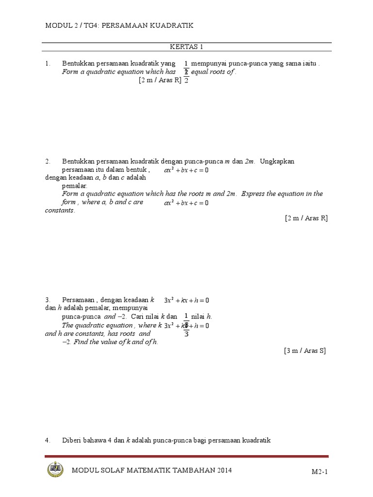 Modul 2 Persamaan Kuadratik Quadratic Equation Mathematical Analysis