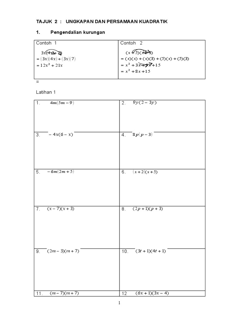 74777920 Matematik Spm Tingkatan 4 Bab 2 Ungkapan Dan Persamaan Kuadratik